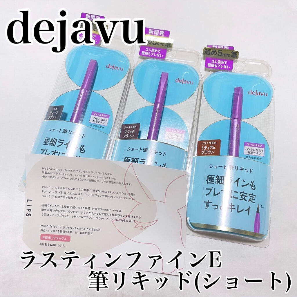 💜dejavuラスティンファインEショート筆リキッドミディアムブラウン💜筆先が“5mmのショート筆”で、筆が長すぎずしなりにくいため、安定して極細ラインが描けるよう設計されていてブレずに狙ったラインが描きやすいアイライナーです☺️皮脂・汗・涙...