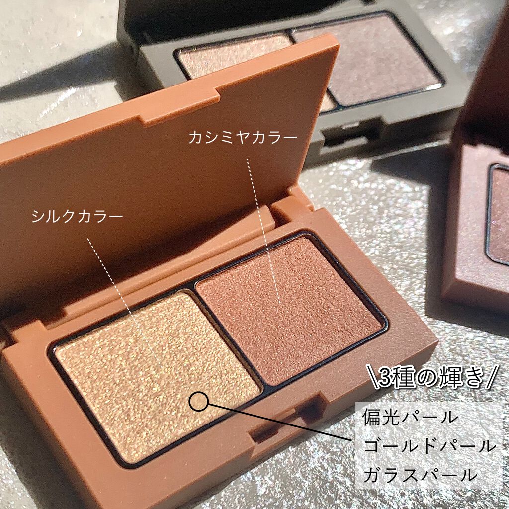 目もとに深みを演出するデュオアイシャドウ。なめらかなツヤを放つ「シルクカラー」と、ぬくもりのあるマットな「カシミヤカラー」の2種をセット。 似合わない人はいないのでは?というニュートラルなベージュ。重ねれば深みも出せるし、サッとひとなでだけすればさりげない陰影を作ることも簡単。 たった2色でアイメイクが完了するので毎朝バタバタな私には強い味方!