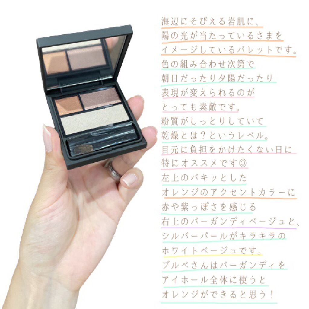 - グラデーションを簡単に作れて立体的なアイメイクが簡単に作れます。メイクしている間、デリケートな目もとの肌を保護し、うるおいを守ります。