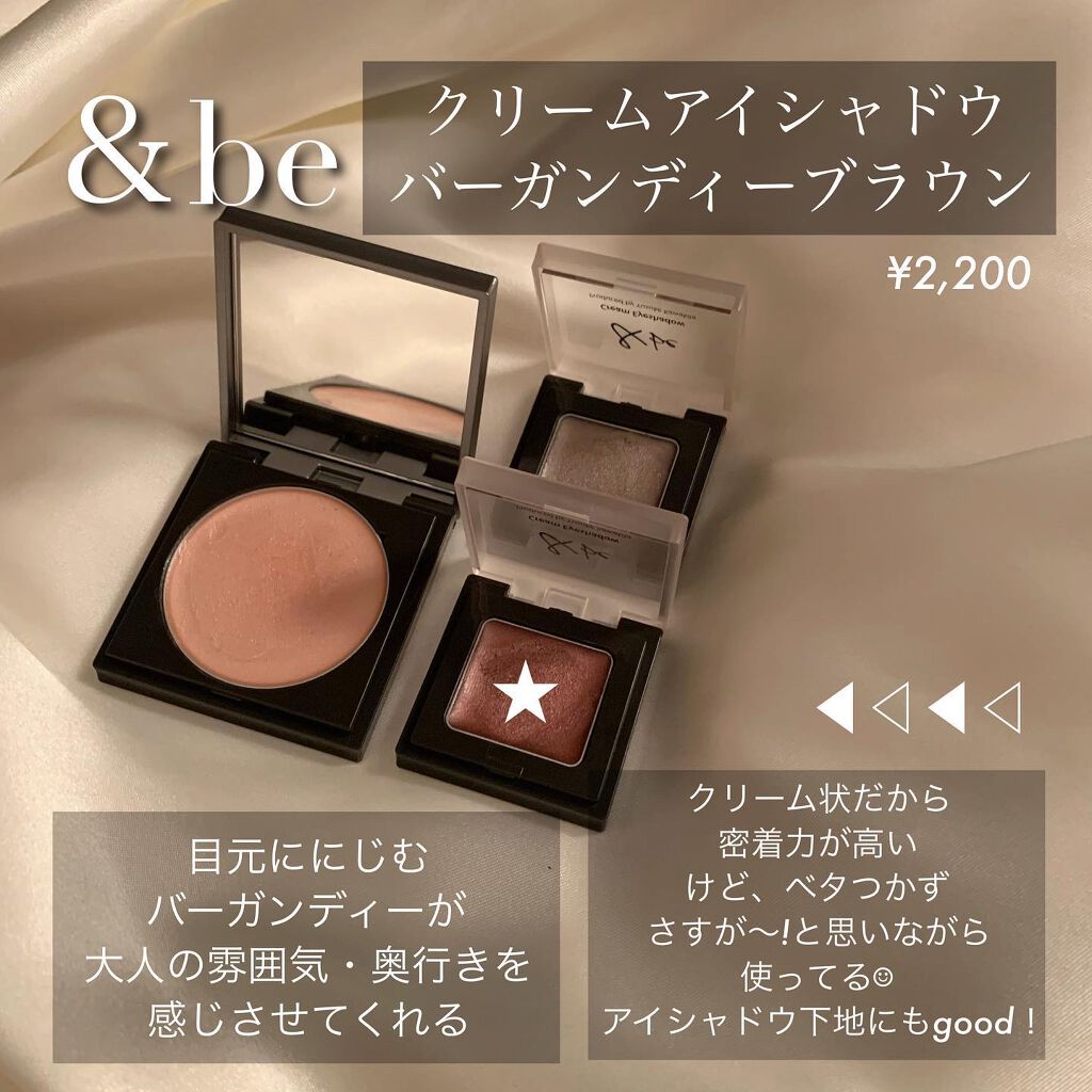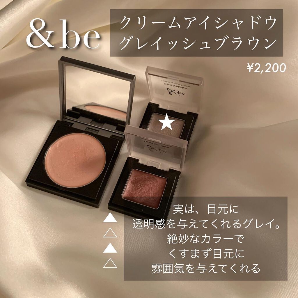 終売になった&beのクリームアイシャドウ。カラーはグレイッシュブラウン。単色シャドウとしても、アイシャドウベースとしても使えます。繊細なパールが散りばめられていて、やわらかく輝く感じ。最初は扱いづらい?と思ったけど、指先にしっかりなじませてか...