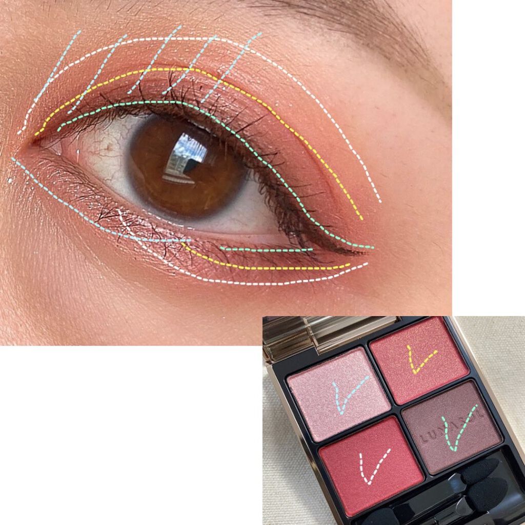 プライマーを使って、密度の高い感じのブラシで 左下ローズを置くように塗る。 ぼかすのは境目だけにして、しっかり色を出す。 右下のダークブラウンと思っていた濃い色は メイクしてみたら結構紫っぽく出たんですが これがまぁくすみ感が強くて…w くすみは何より苦手だよ😂😂 右上のラメはぺかっと光るのがとっても良い!!🤩 割とシンプルなメイクになるな~と思うけど しっかり色出せたので無事使っていけそうです💃🏼💓