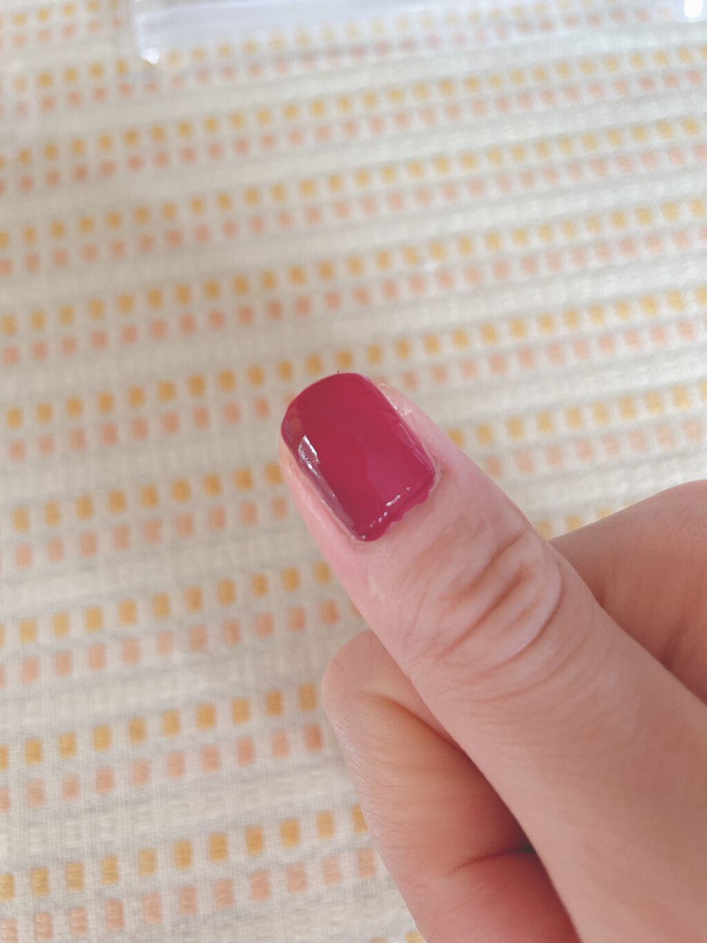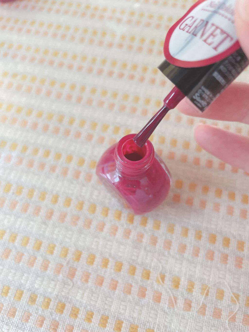販売名→MMネイルポリッシュG購入場所→セリア色→①商品の色・・・ビターレッド②実際の色・・・濃い赤乾き時間→10分前後ムラ→あるけど、濃い割にあんまり目立たない〜感想〜久しぶりのネイル。気合を入れて赤にしました。久しぶり...