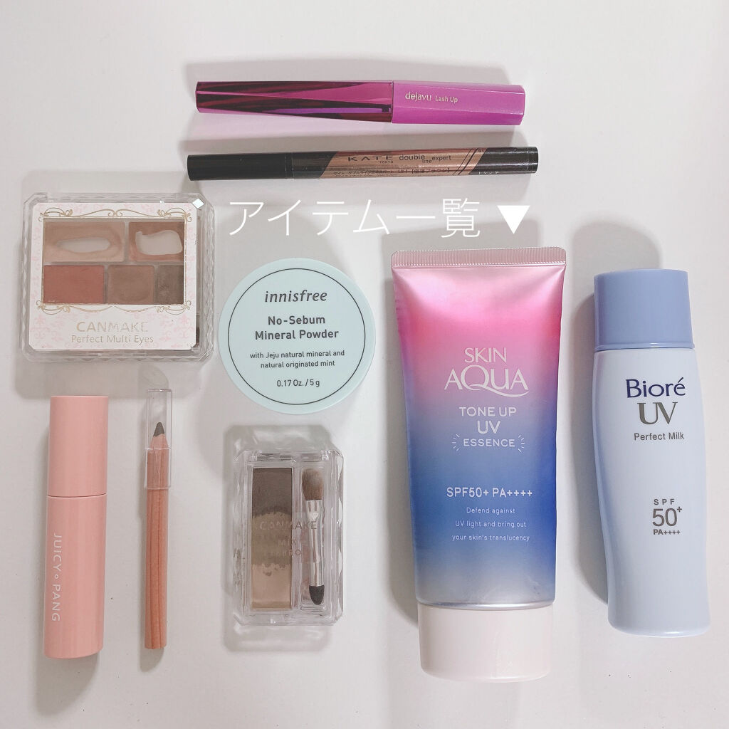 ビオレのさらさらパーフェクトミルクを愛用中!乾燥肌だから6月~10月にかけて使ってる! イニスフリーのパウダーで肌をサラサラにする。 アピュースパークリングティントのBE01は最強。 夏休み明けに是非試して見てね!