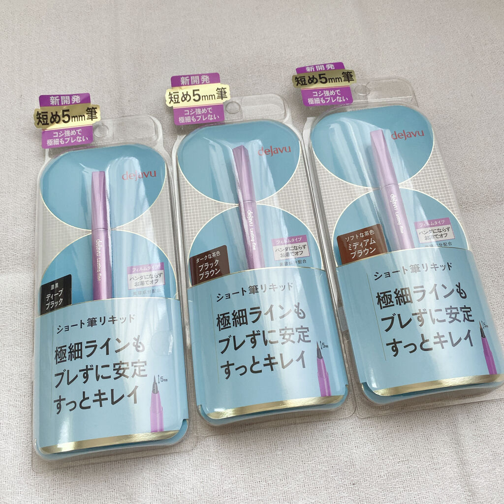 💜dejavuラスティンファインEショート筆リキッドミディアムブラウン💜筆先が“5mmのショート筆”で、筆が長すぎずしなりにくいため、安定して極細ラインが描けるよう設計されていてブレずに狙ったラインが描きやすいアイライナーです☺️皮脂・汗・涙...