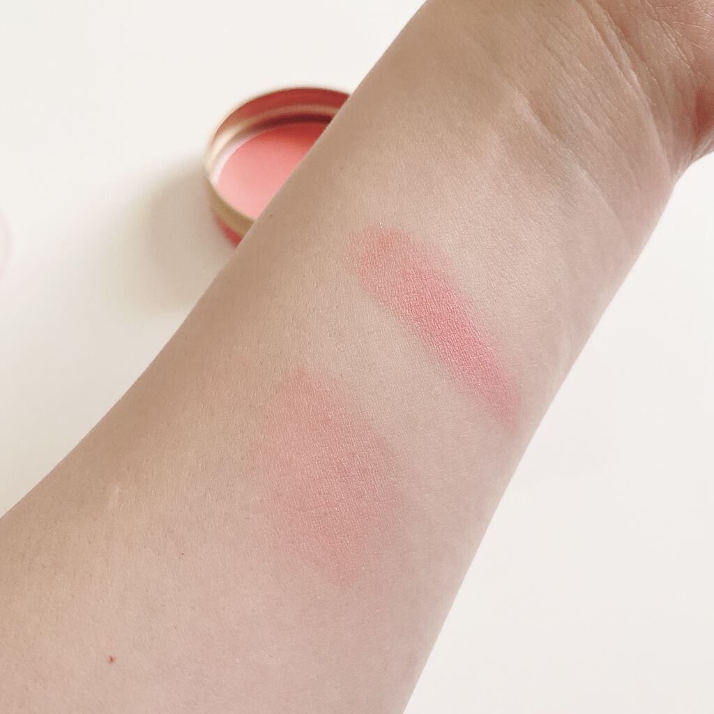 優しめな発色でスポンジでほんの少しずつつけたら赤ちゃんみたいなばぶみある頬に仕上がります👶🏻ྀི🍼 一気に濃く付きすぎることなくチーク初心者でも使いやすいと思います🫧 スポンジでぽんぽん付けると自然です🤍