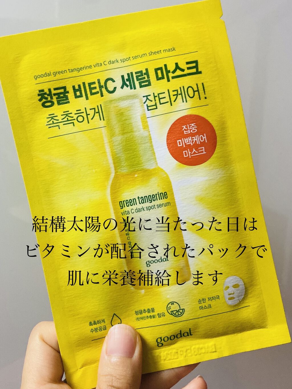goodalのビタCセラムマスク😊😊👍保湿感あって良かった。肌がワントーン明るくなった気がしました😄😄👏👏👏シートは薄めだけど、セラムがたくさん入っているから、シートがヒタヒタでよかった。ビタミン系のものはしみる感じするけどこちらは優しい感じ...
