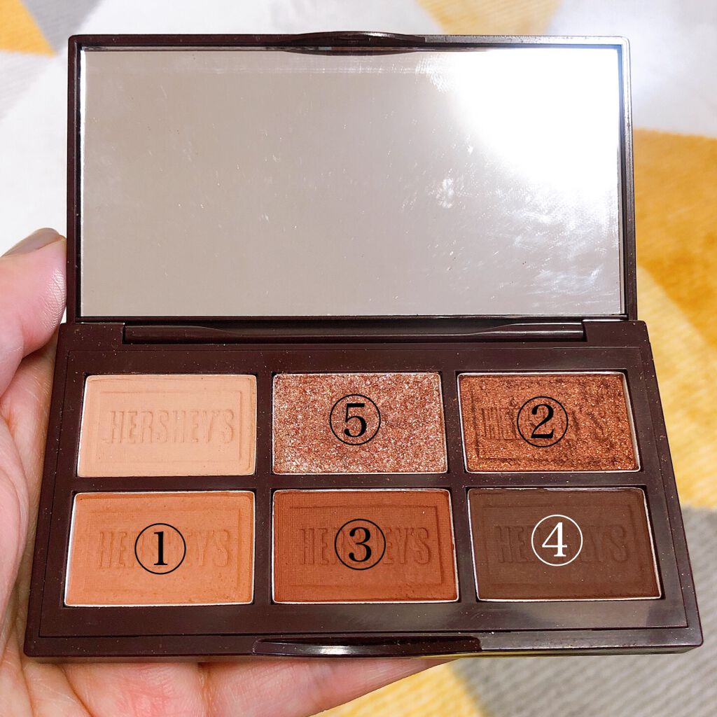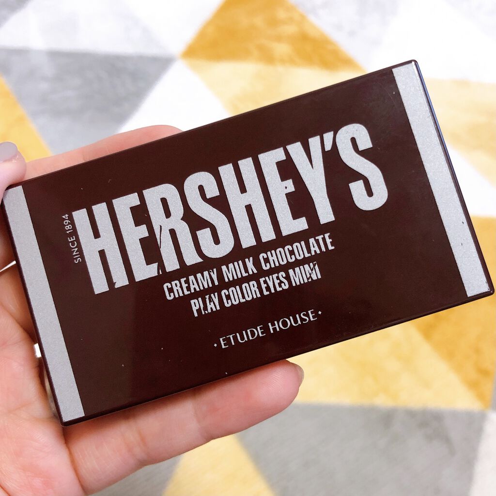 ☆ETUDEハーシープレイカラーアイズミニ見た目がチョコレートっぽくて可愛い🍫左上のベージュカラーをアイホールに、下の段真ん中を二重幅に、右下をアイラインの様に使いました。発色よく粉質は硬く粉崩れしない感じ。使うたびにアイシャドウの型押しが消...