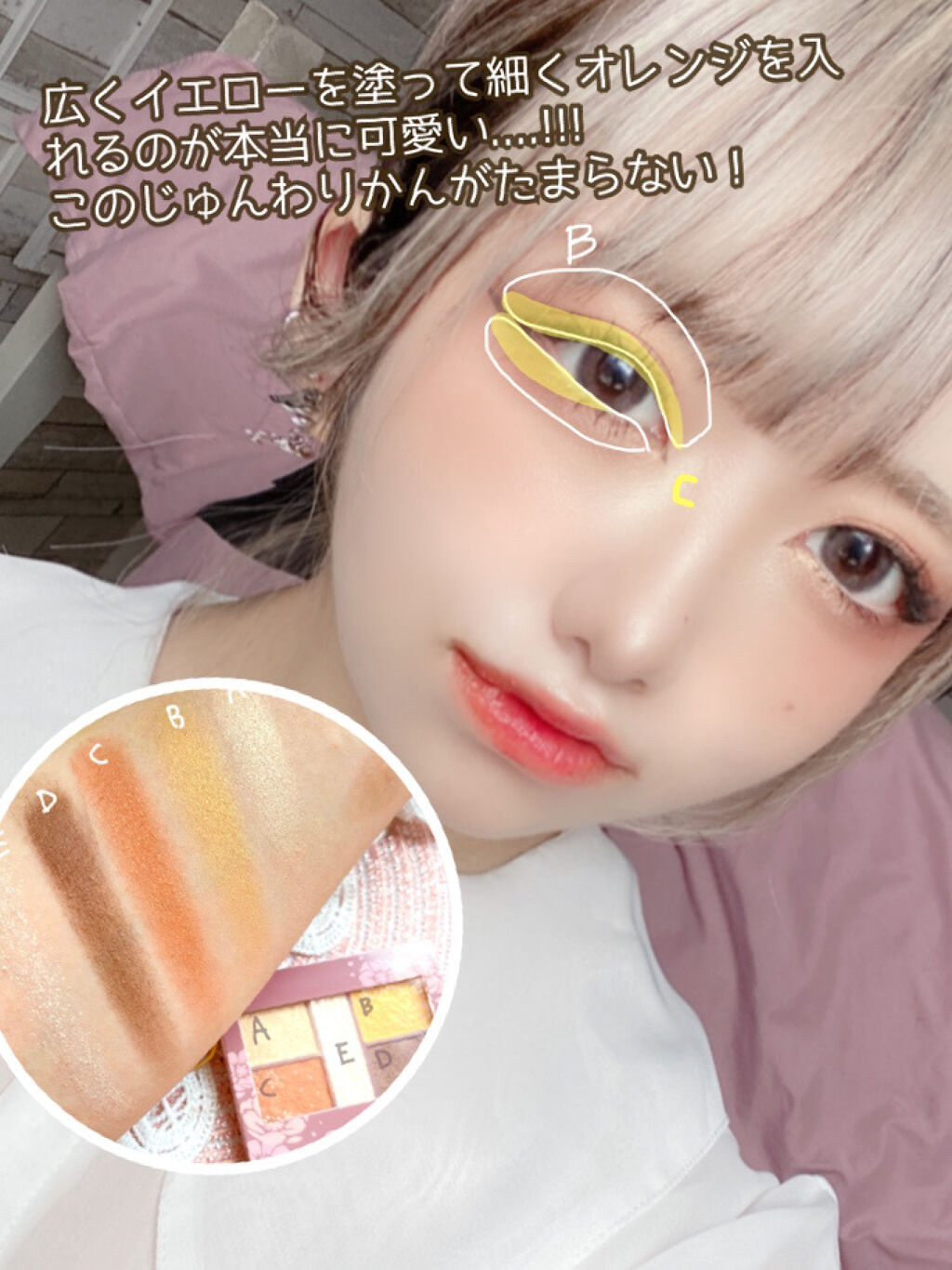 - 1枚のパレットで2つのスタイルが完成! 5色の欲ばりアイシャドウ♥ メインカラーを選んで2つのスタイルが楽しめる! A→B→D でスタイル1 A→C→D でスタイル2 繊細な粉質が、しっとりとまぶたに密着して色落ちを防ぎます。 透明感のあるキラうるトッピングジュエル(繊細ラメ)は、気分によってトッピング!