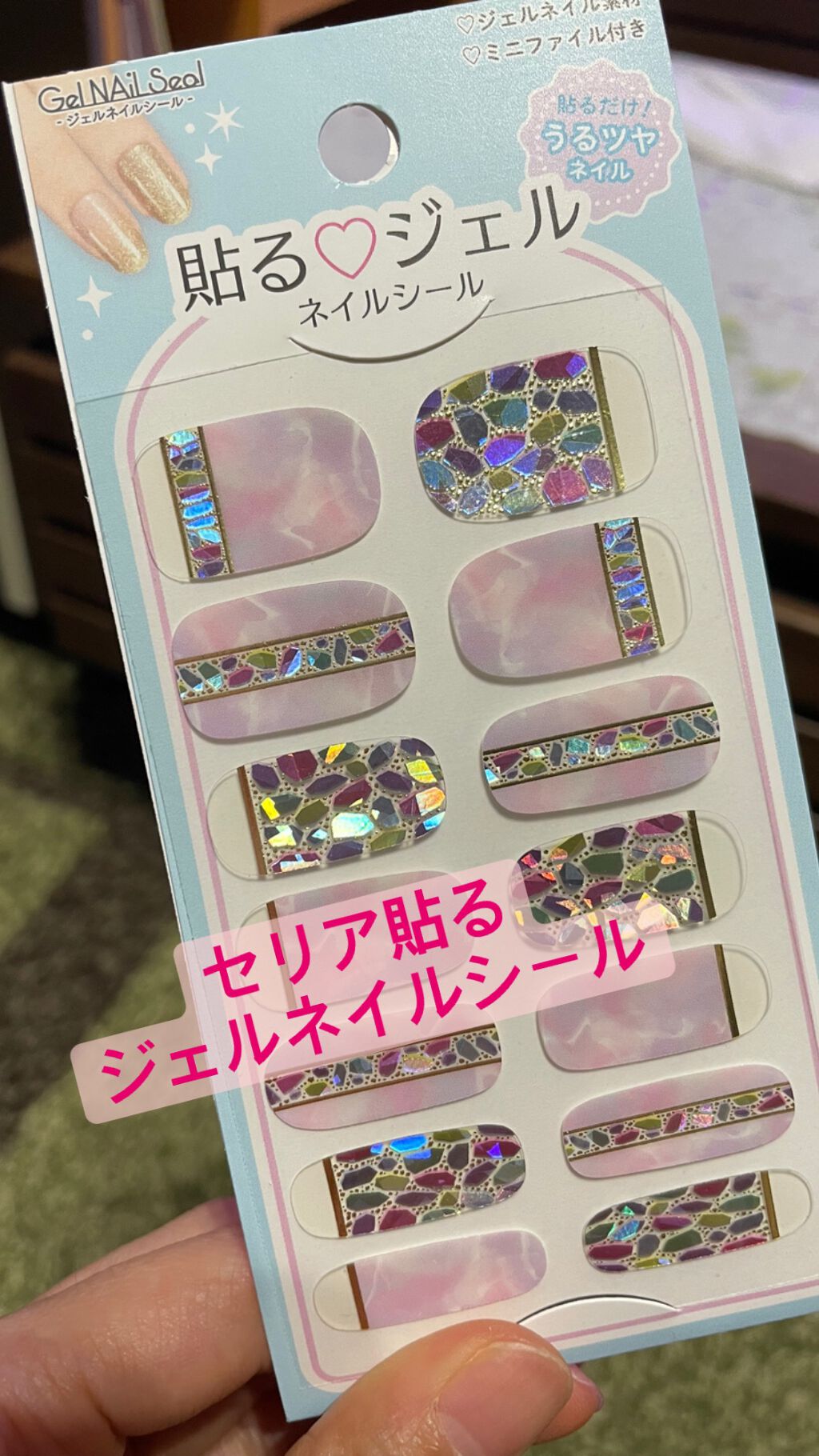 セリアのジェルネイルシール!110円でこのクオリティ本当にありがたいですよね🥺コーティングはしないとシール感めっちゃあるけど😂上手くいけば3週間ぐらいもってくれる!リペアするには枚数が少ないから長持ちしない体で使った方がいいと思いますが💦#n...