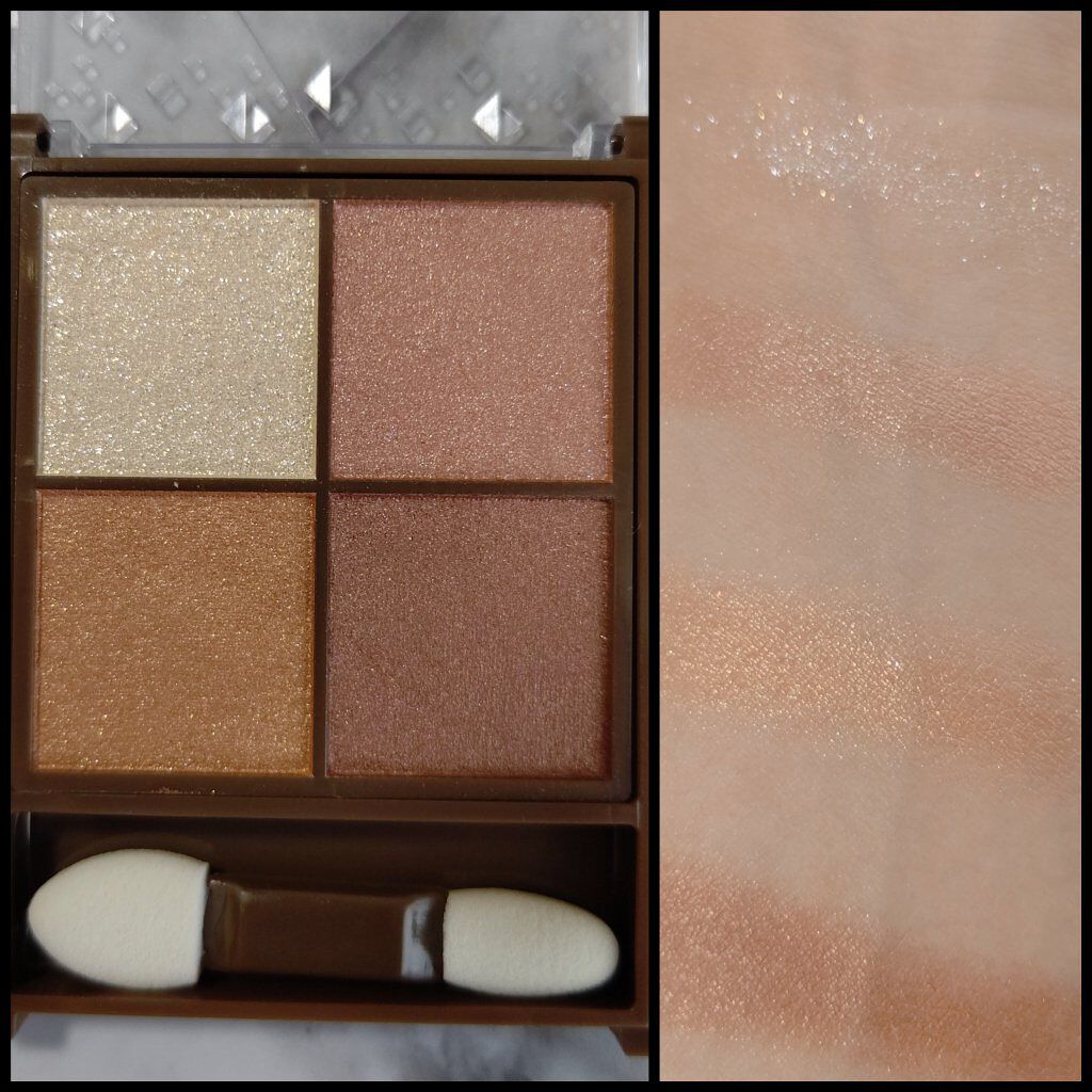 サテンのような質感が美しい、パールリッチな4色アイシャドウ。 重ねても濁りにくいクリアベール処方で透け感あるニュアンスカラーが楽しめます。 透け感がとても品良く、左上のラメも細かいから大人でも使いやすいと思います。透け感があると発色を調整できて、盛り耐性がない私でもいい感じに使えました。 コスメの移り変わりがはやすぎて、新作が出るのが楽しみな反面、廃盤になるものとのお別れが寂しく感じます。