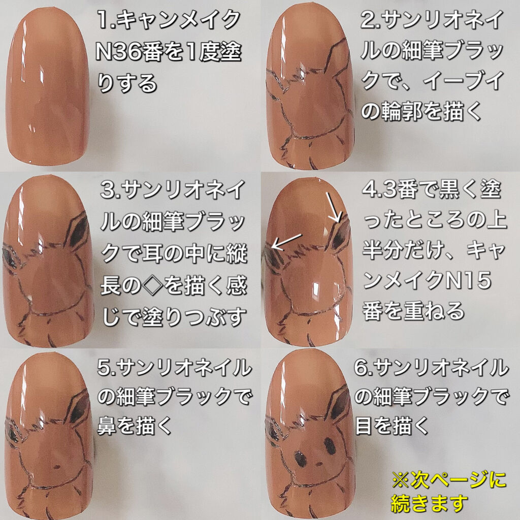 可愛いイーブイちゃんネイル💓 上手すぎてポリッシュで 描いたとは思えないよ🥺✨✨ 今回も楽しいコラボありがとう〜💕