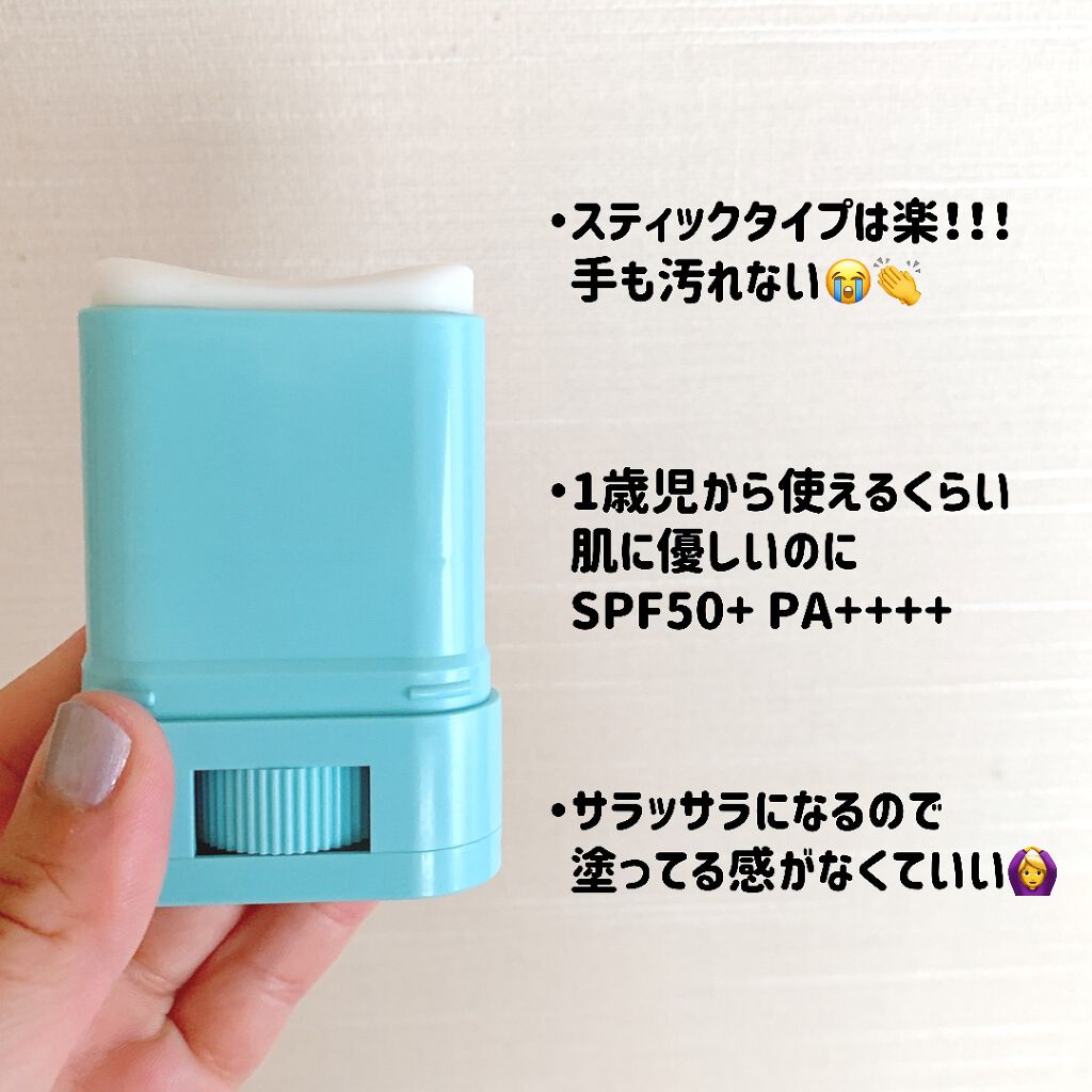 手が汚れないから塗り直しにもピッタリ! スティックタイプの日焼け止めです サッと塗るだけ、でもすぐサラサラ✨ 外出先でも塗り直しがしやすいのが良かった 1歳から使えるやさしい製品です