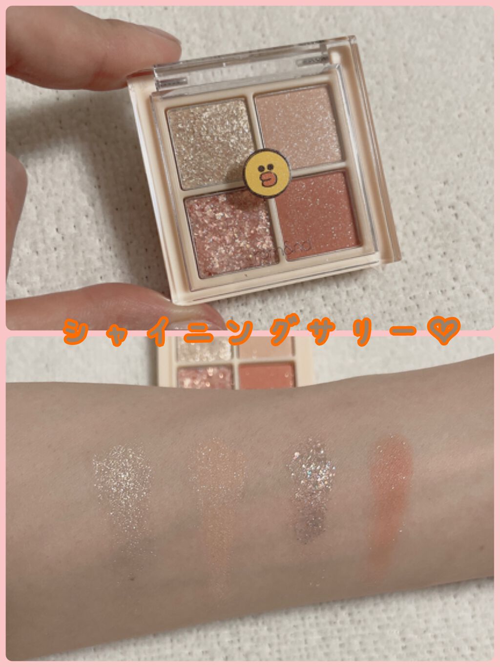 舞台メイクによく使われるコスメブランドで、ベースメイクコスメもポイントメイクコスメもハイスペな物ばっかり! アイシャドウ・アイブロウ・チークがこれ1つで完結して、持ち運びにも便利だから、ちょっとしたメイク直しに重宝する! むしろ、コテコテしてなくて逆に今時でお洒落🩷 さらには、ピンクラメを一匙加えるだけで一気に垢抜けた感じになる♪