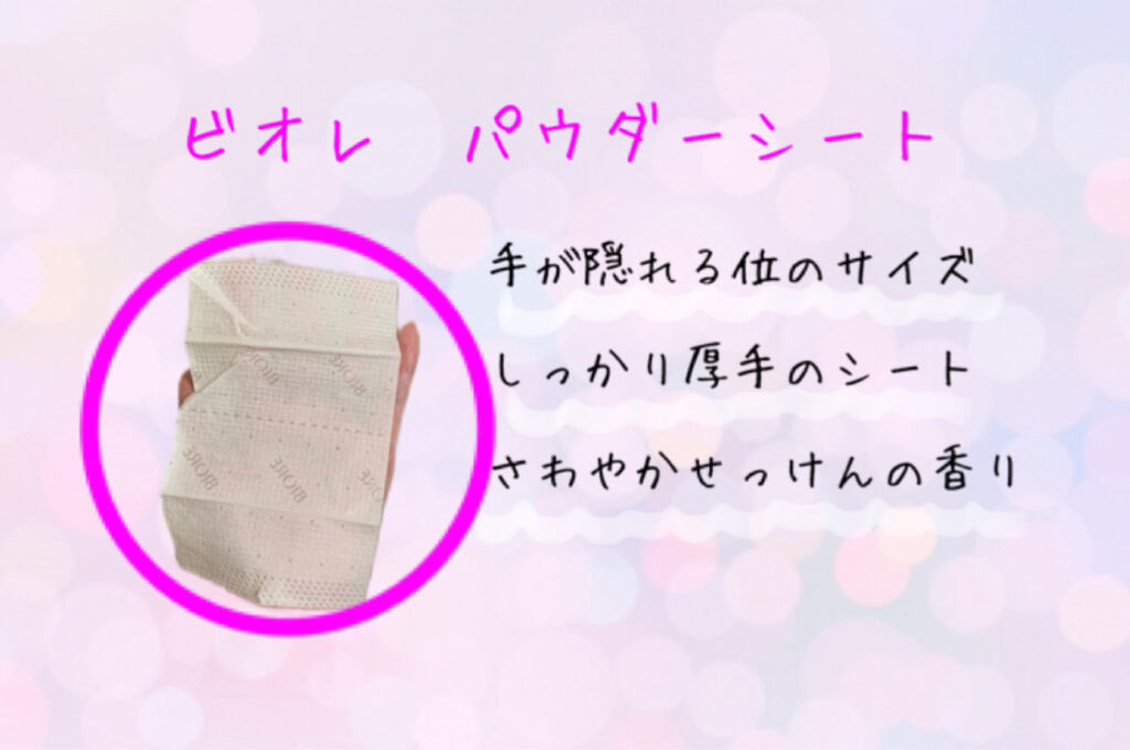 【使った商品】ビオレさらさらパウダーシートさわやかせっけんの香り携帯用10枚【商品の特徴】・ベタつきやニオイの原因となる皮脂をオフ・さわやかせっけんの香り・携帯に便利なコンパクトサイズ【良いところ】・さらさら肌長続き・厚手のシートで破れにくい...