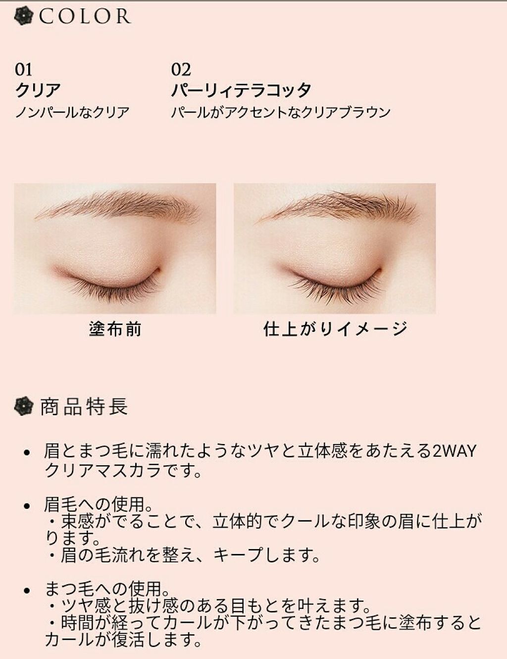 - ・透明度が高いクリア層×カラー層の2層構造で、ひと塗りで抜け感と内側からにじみでるような血色感のあるグラデーションが叶うリップスティックです。 ・クリア層:うるツヤ効果 透明感・ツヤ・のびの軽さを実現。カラー層を自然にぼかし抜け感を演出します。 ・カラー層:血色感 うるおい感とにごりのない美しい発色を叶えます。 ・彩度の高いカラーバリエーション。クリア層でぼかすことで簡単にフェミニンで色っぽい唇に仕上がります。 ・パールタイプ(SP060)は、お手持ちのリップにパール感を少し足したり、いつものリップの色味をぼかして抜け感を出したい時にニュアンスチェンジできます。 ・美容液成分配合。唇にうるおいをあたえ、あれ・乾燥を防ぎます。 ・無香料 ・美容液成分〔スクワラン〕(保湿)