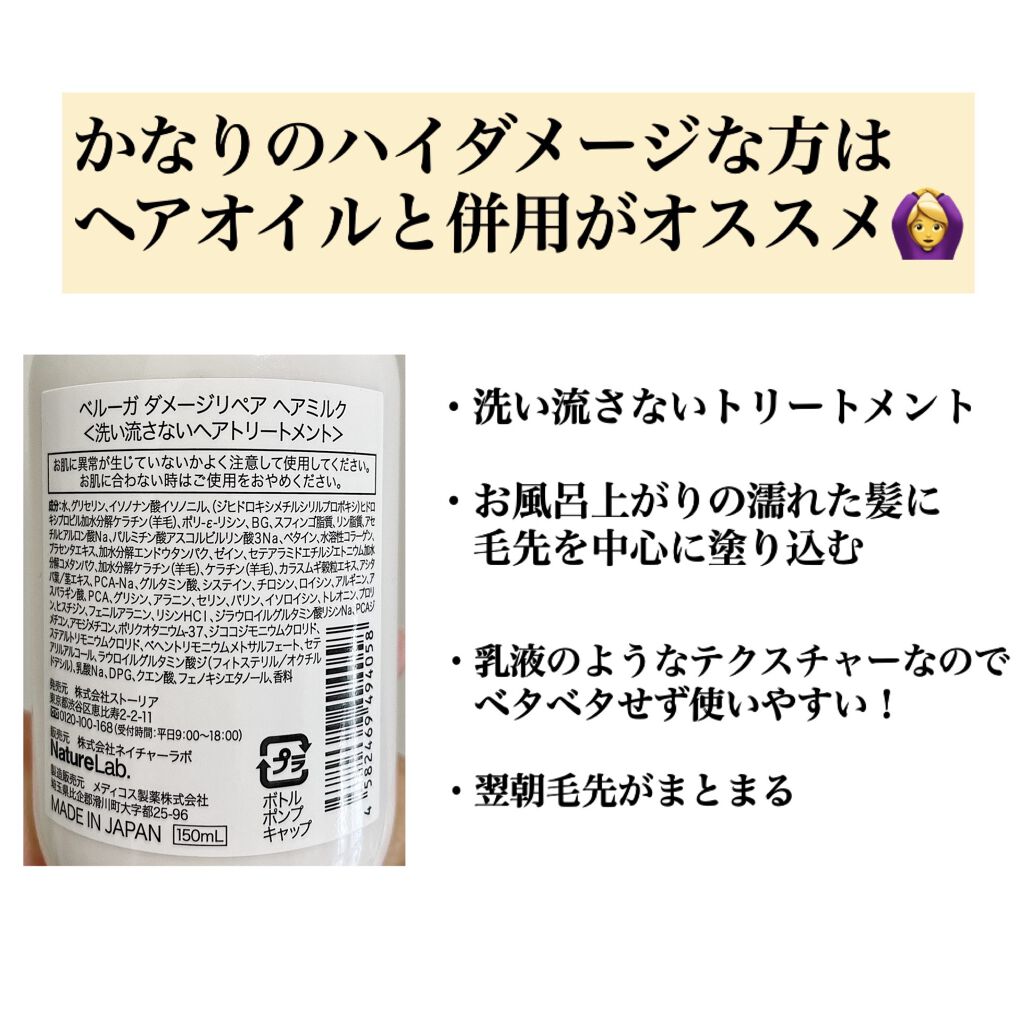 商品詳細情報BELLUGA ダメージリペア ヘアミルク