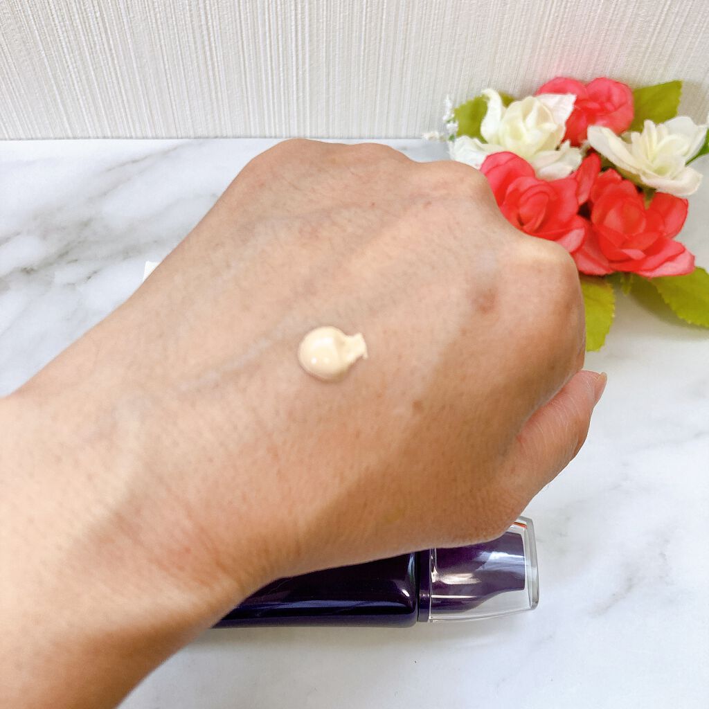 プッシュ式で適量が出しやすく、最後まで清潔に使えます。透明無色でややとろみのあるテクスチャーで無香料です。お肌につけてみるとスーッと馴染んで浸透力の高さがうかがえます。そして伸びがいいので1プッシュでお顔全体につけることができます。想像よりも...
