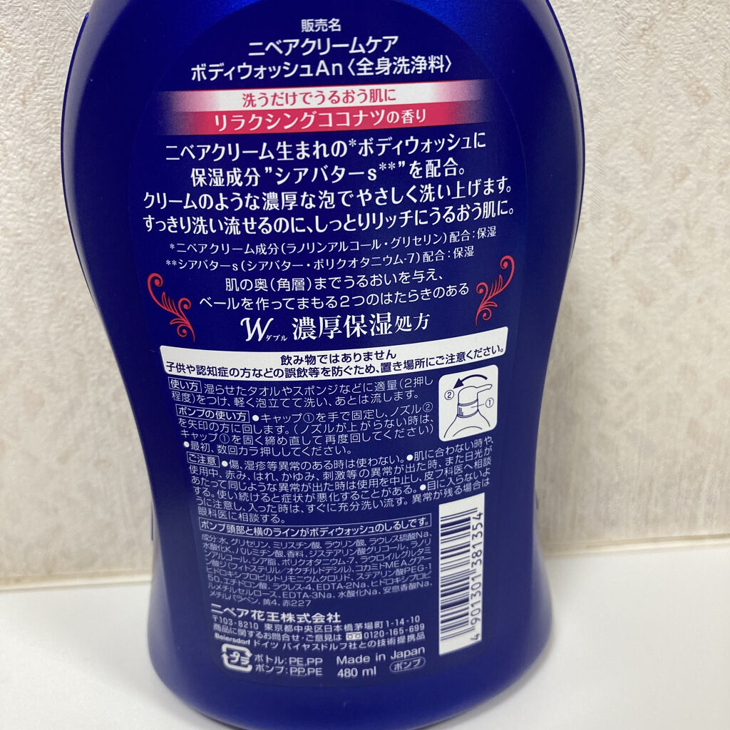 - ニベアのスキンケア発想から生まれたW濃厚保湿※処方のボディウォッシュ。 ボディミルク成分*とシアバターs**配合。クリームのような濃厚な泡でやさしく洗い上げます。 すっきり洗い流せるのに、しっとりリッチにうるおう肌に。ヨーロピアンホワイトソープの香り。 *ボディミルク成分(グリセリン・ジグリセリン)配合:保湿**シアバターs(シアバター・ポリクオタニウム‐7)配合:保湿 ※うるおいを与えて、まもる