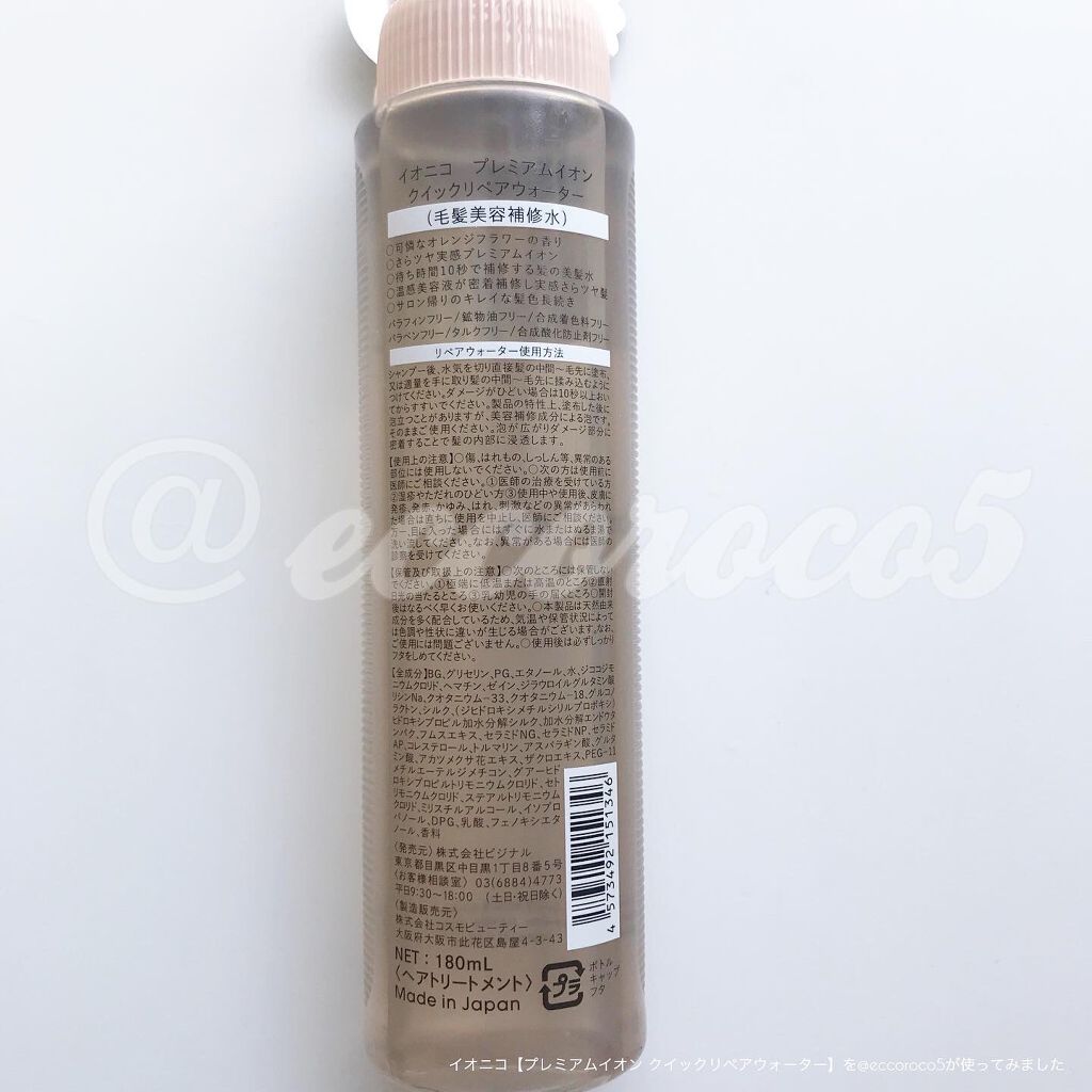 商品詳細情報IONICO プレミアムイオン クイックリペアウォーター (毛髪美容補修水)