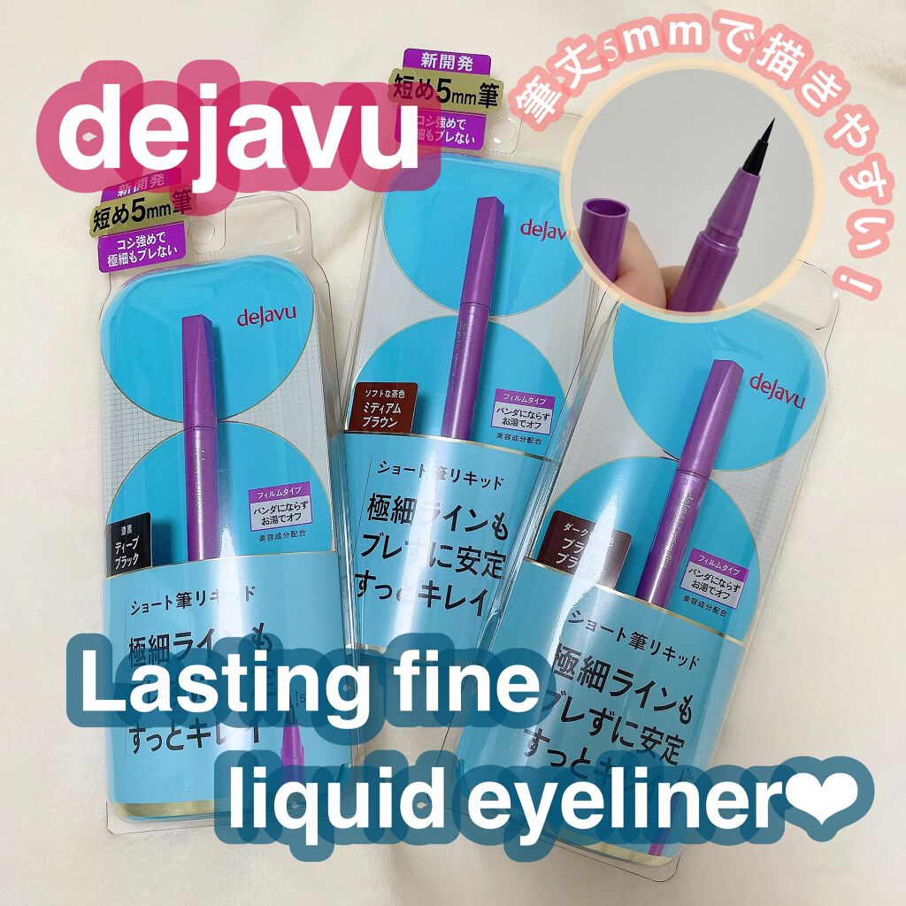 💜dejavuラスティンファインEショート筆リキッドミディアムブラウン💜筆先が“5mmのショート筆”で、筆が長すぎずしなりにくいため、安定して極細ラインが描けるよう設計されていてブレずに狙ったラインが描きやすいアイライナーです☺️皮脂・汗・涙...
