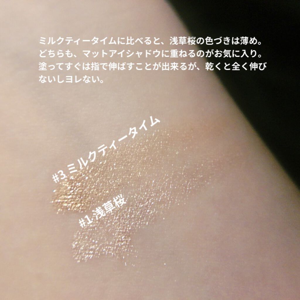 | リキッドアイシャドウランキング第9位 | 塗る時のコツは手早く伸ばすこと。塗り広げるとじゅわっと滲み出るような発色でかわいいです。 | 詳細を見る |
