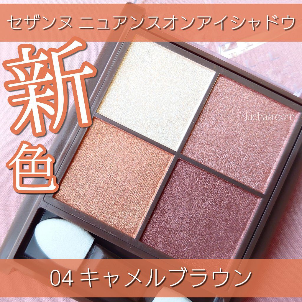 透け感がお洒落なキャメルカラー 【CEZANNE ニュアンス オン アイシャドウ】 こなれ感のある洗練された目元に仕上がるパレット🎨 4色ともパールをリッチに配合した処方になっており、艶やかな透明感のあるサテンのような発色。 色を重ねてのせても濁ることなく絶妙なニュアンスカラーで綺麗!色々なアイメイクが楽しめるアイシャドウですね✨