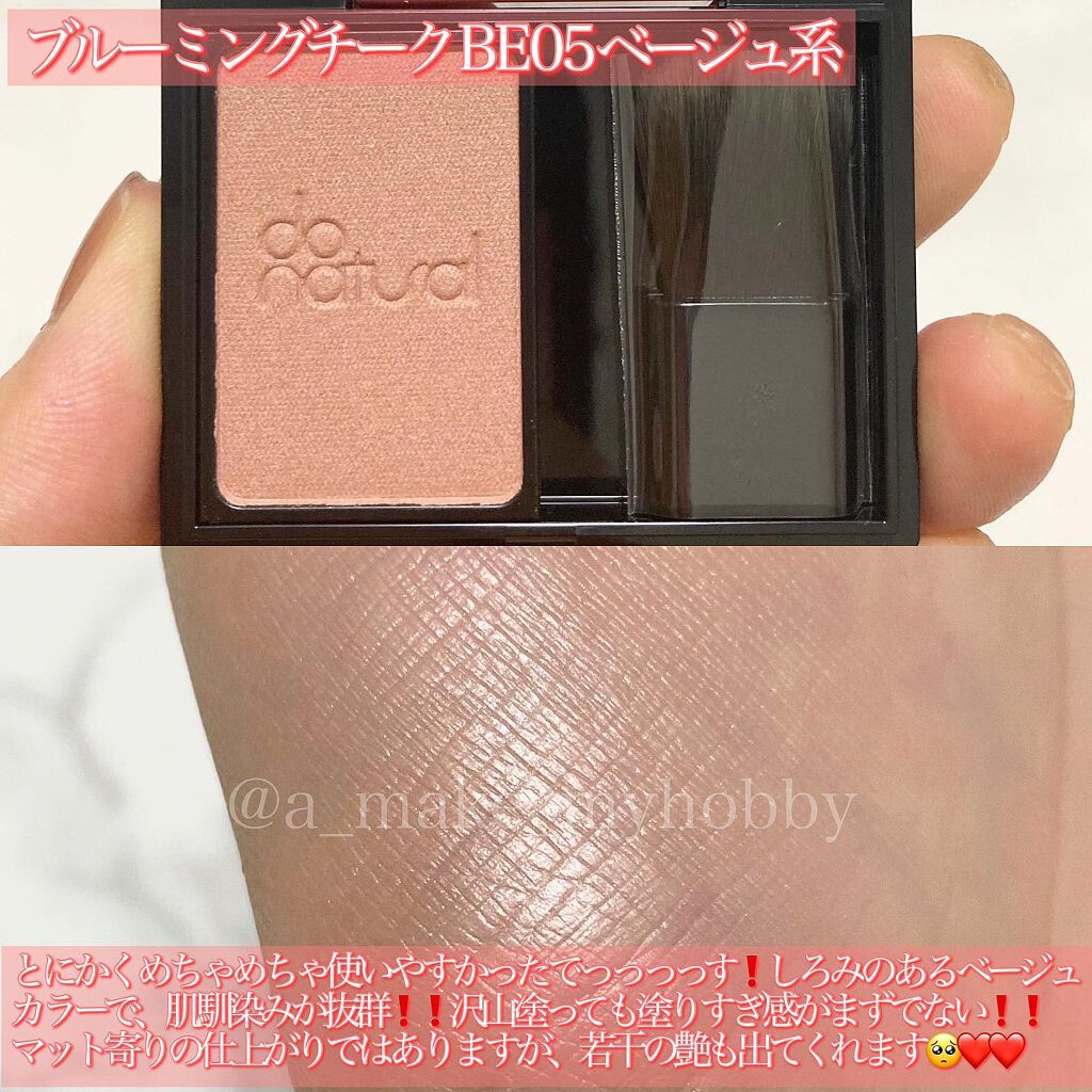 めーーーーーっちゃくちゃ使いやすいよ! 🌱ドゥーナチュラル ブルーミングチーク PL06 パール系(ハイライト) 税込1,980円 ほんのり偏光ピンクの輝きをする ・パールが細かくマット肌でも合いやすいこの2点。 付属のブラシがコシがあって使いやすいし、裏蓋に鏡がついているのもポイント高い💡
