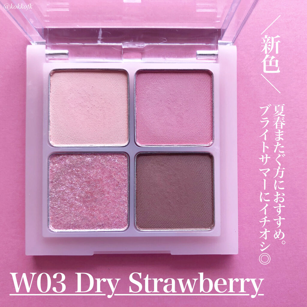- 可愛いがあふれるドリームシャドウ ①肌に馴染みやすく使いやすい配色 ②クールメイクにピッタリな瞳を演出 ③なめらかで塗り心地の良いマットカラーが立体感を作る ④キラキラと輝く上品なまなざしを作るグリッター