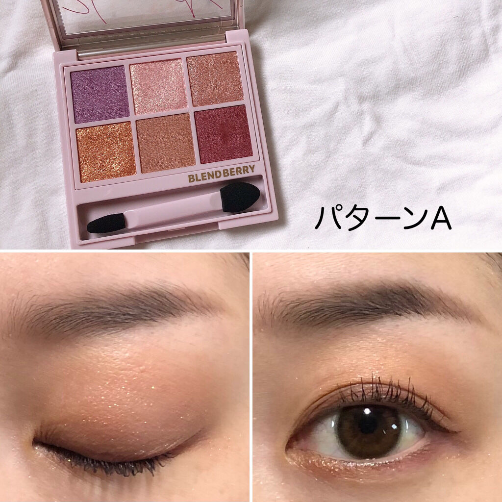 左下のベリーのようなピンクを二重幅まで。その上の、左上のコーラルをまぶたに。 真ん中の上段ラメをまぶたに足し右下のカーキを目尻に使用しました。 涙袋には、真ん中の下段を使用して 涙袋影には、右上のグレーを使用して全色しっかり使いました♫ BLEND BERRYはやっぱり可愛い❤️