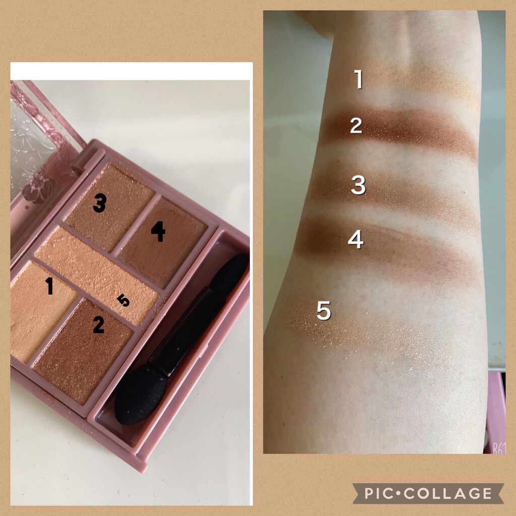 - 1枚のパレットで2つのスタイルが完成! 5色の欲ばりアイシャドウ♥ メインカラーを選んで2つのスタイルが楽しめる! A→B→D でスタイル1 A→C→D でスタイル2 繊細な粉質が、しっとりとまぶたに密着して色落ちを防ぎます。 透明感のあるキラうるトッピングジュエル(繊細ラメ)は、気分によってトッピング!