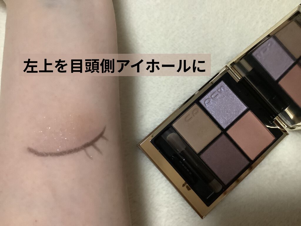46ネオン ダリア 去年発売された限定です。ラベンダーカラーのラメです。ベースとして使ってます。 38バーガンディ ペルレ こちらも限定です。目のキワに乗せてブラシでぼかして使ってます。 42セレスティアル ピンク こちらも去年発売された限定です。目頭に乗せるとキラキラしますよ!