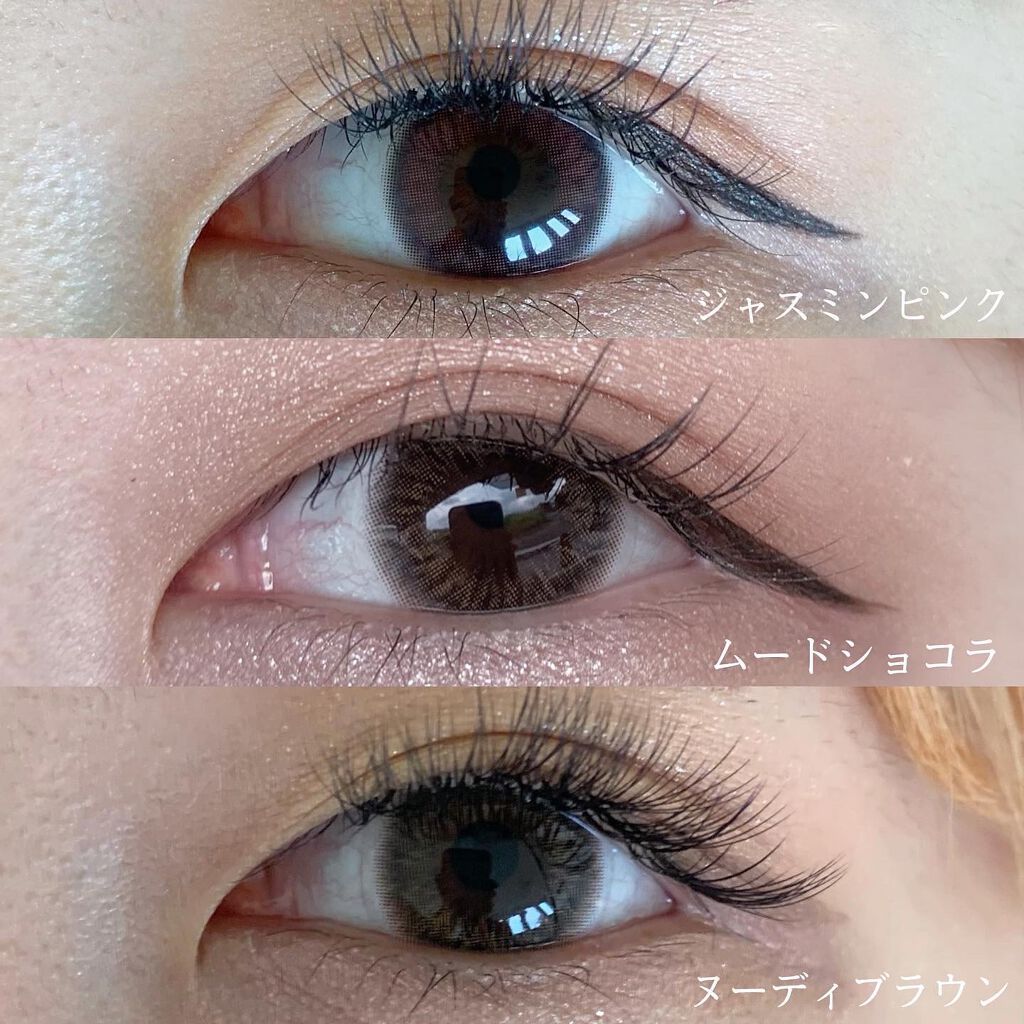 ナチュ盛りカラコンToricoEyeルーシーワンデー・ヌーディブラウン・ジャスミンピンク・ムードショコラ¥1,670(1箱10枚入)装用期間:ワンデー(1日使い捨て)◇Dia:14.20mm◇着色直径:ヌーディブラ...