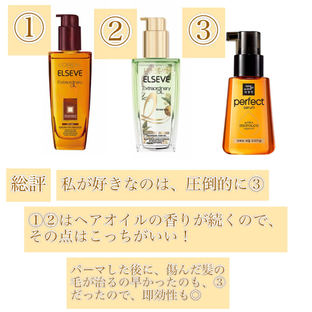 | このオイルは熱から守り、サラサラにするだけでなく艶を出してくれるので本当にすごい♡ | 詳細を見る | |