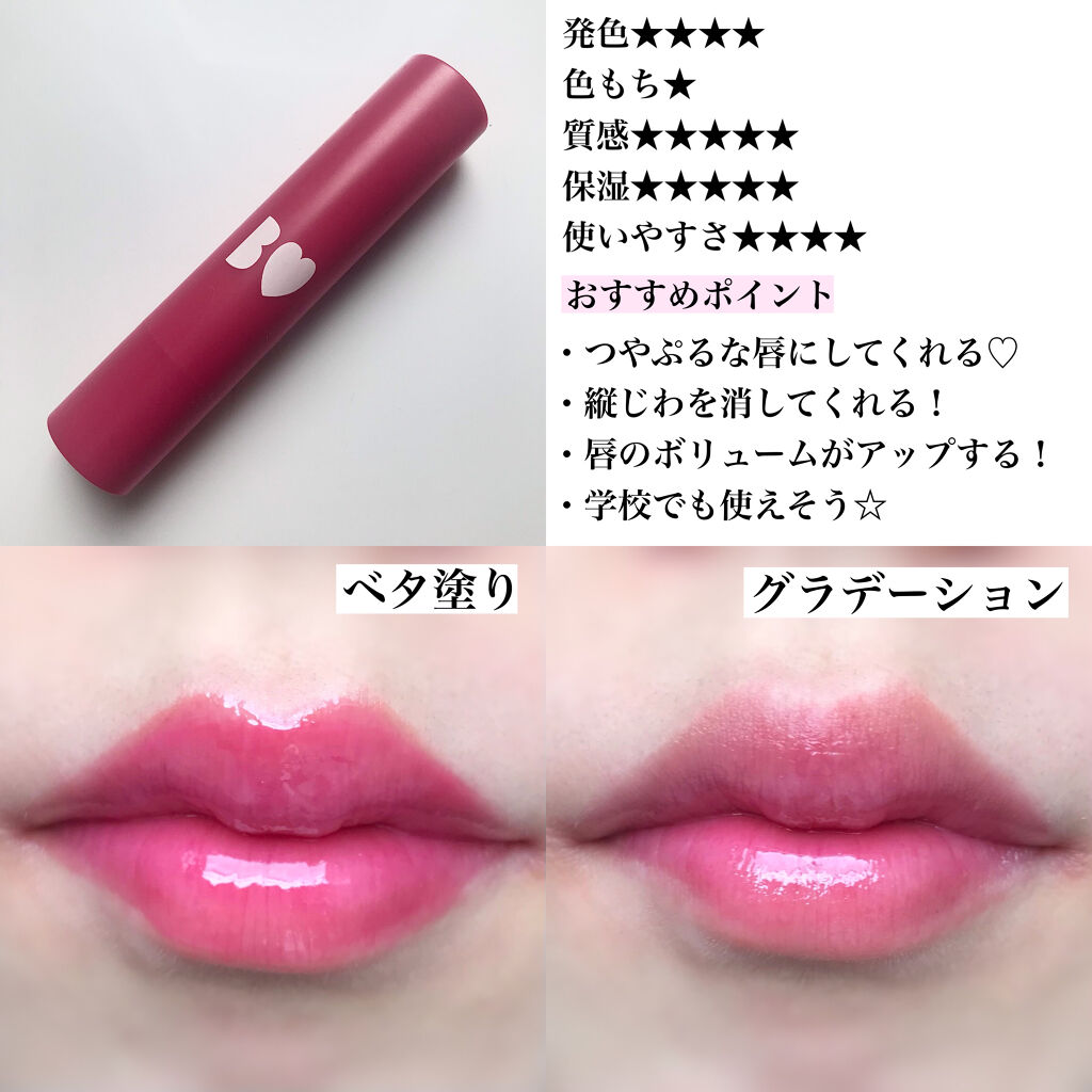 | リップティントランキング第128位 | 色味は最高!発色がめっちゃいい!しっかりティントの役割も果たしてくれる | 詳細を見る | |