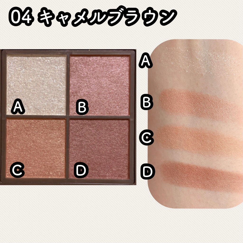 透け感がお洒落なキャメルカラー 【CEZANNE ニュアンス オン アイシャドウ】 こなれ感のある洗練された目元に仕上がるパレット🎨 4色ともパールをリッチに配合した処方になっており、艶やかな透明感のあるサテンのような発色。 色を重ねてのせても濁ることなく絶妙なニュアンスカラーで綺麗!色々なアイメイクが楽しめるアイシャドウですね✨