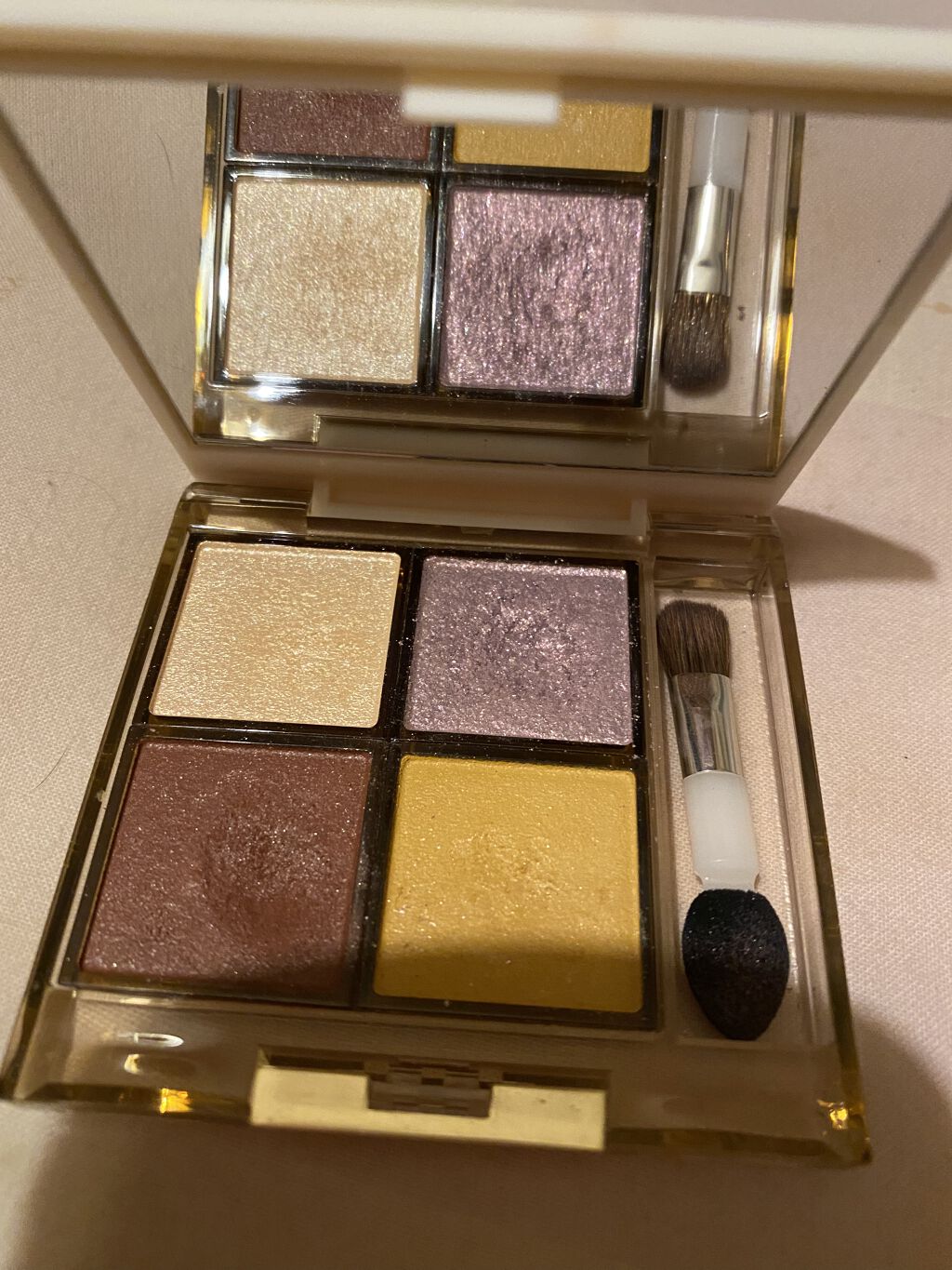 - 色も、質感も、きらめきも。毎日お気に入りの目元を作れる4 色パレットシャドウ 1.様々な色や質感、きらめきを組み合わせて楽しめます。 2.重ねても美しく濁りのないクリアな発色です。 3.まぶたにピタッと密着して粉飛びやヨレを防ぐフィットオイル*1配合。 4.デリケートなまぶたのためのスクワラン*2配合。 <デザイン> ・色調整しやすいオリジナルチップ&ブラシ しっかり発色させたいときにはチップ、ふんわりぼかしたいときにはブラシを。 お好みに合わせてお使いいただけます。 ・ 持ち運びに便利な鏡付き ・ この冬だけの限定デザイン パーティーの華やかさを想起させるカジュアルアートをあしらった開放感あふれるポジティブなデザインです。 *1 リンゴ酸ジイソステアリル *2 保湿成分