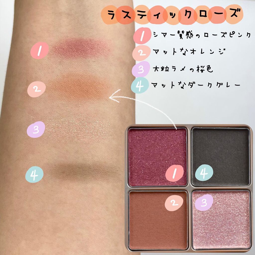 | アイシャドウパレットランキング第8位 | 時間が経っても キッラキラな艶・ラメ感が続く。 色がくすんだりも気にならないし 塗ったあとに何回も鏡見てしまう | 詳細を見る |