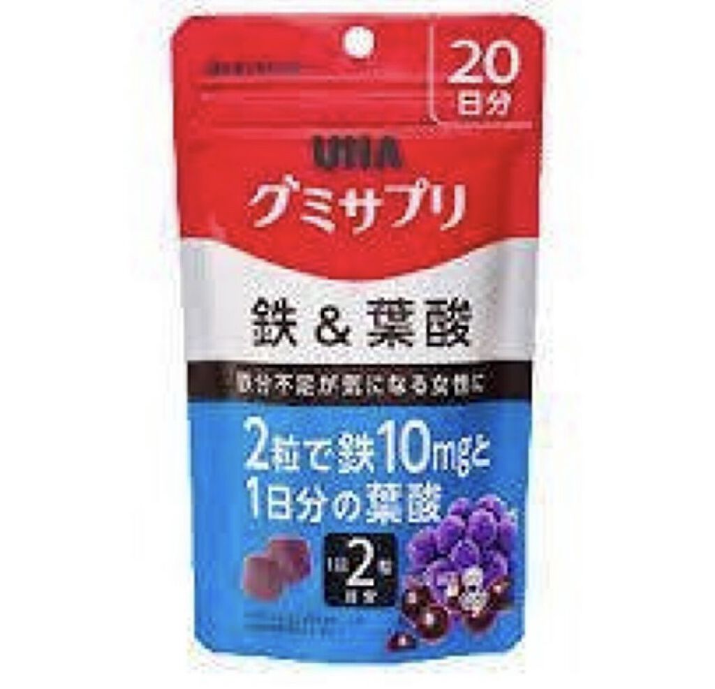 1日2粒で鉄分と葉酸が補給できる グミタイプのサプリ❣️ 比較的硬めのグミでほんのり甘みがある味🙌 錠剤のサプリを摂りたくなくできるだけ薬状でない物で補給したい私のニーズには合っていました