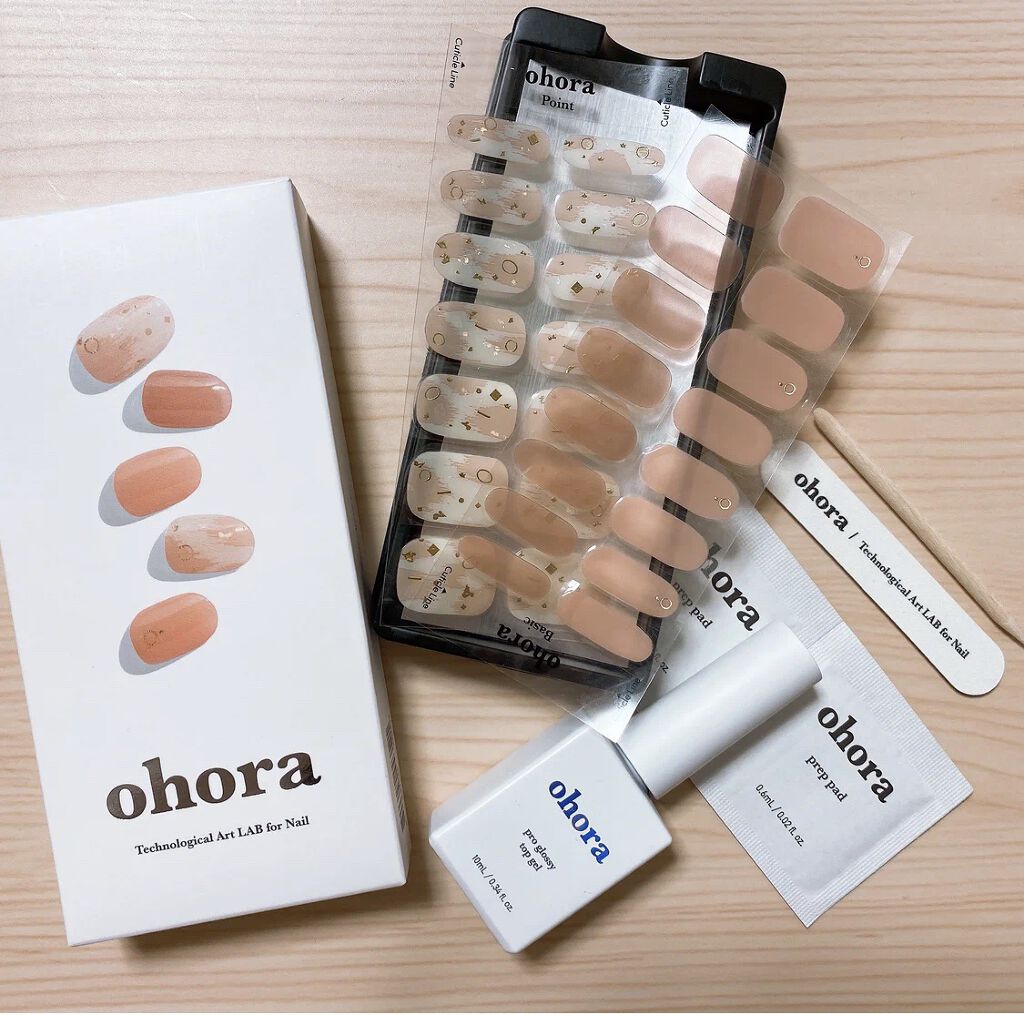 ohoraのジェルネイルシールで簡単セルフネイル💅🏻♡貼る→ライトで硬化するだけ!!爪のサイズに合わせて切るのは爪切りを使うのが簡単だったよ🤍仕上げにohoraのトップコートジェルを塗って仕上がりの透明感とぷっくりツヤ感UP🪄✨#ohora#...