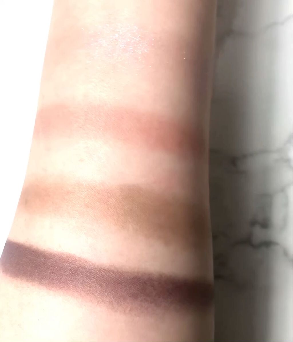 マット3色とグリッター1色がセットになっています。 キャラメルカラーが4色入ったパレットです。 少し赤みが強いブラウン系です。つけると赤みがふわっとさして、ちょっと色気が出る感じになります。 カラーはキャラメル、キャラメルブラウン、ピンク系キャラメルグリッター、ダークキャラメルブラウンです。 グリッターにはピンク、黄色、紫などが入っていて若干偏光ラメになっています。めちゃかわいいです。 くすみベージュ、グレージュ、シャンパンベージュグリッター、スモーキーダークブラウンです。 全体的に超オシャレなグレーカーキ系になります。 グリッターには紫、黄色、少しオレンジなどが入っていて、シャンパンゴールドベースですが偏光ラメで若干青っぽく見えてキレイです。 つけると一気にモードっぽい小洒落た感じになります。量産系メイクには合わないと思いますが、シック系、地雷系、モード系など、ちょっと斜に構えた感じに仕上げたい場合にはめちゃくちゃ馴染みます。