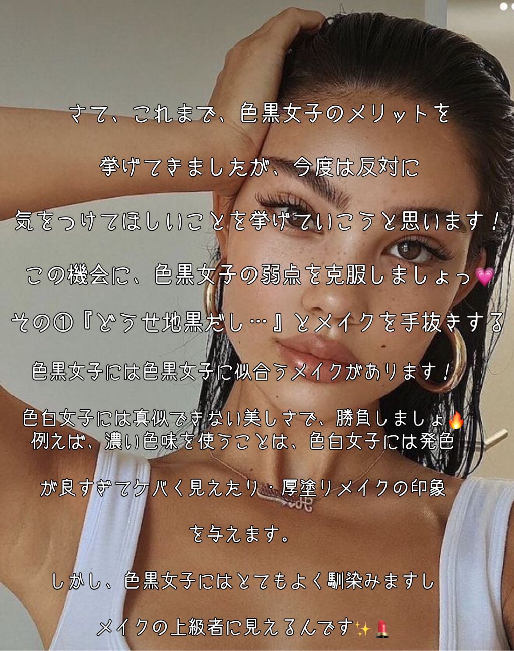 こんにちはっ💗いちごミルク🍓🍼です!〜はじめに〜今から紹介していくのは地黒女子の魅力です!色白の方が優秀だとか、地黒の方が優秀だとかそういうのは一切書かれておりませんので、安心して見てもらいたいです(*´꒳`*)『へーそうなんだ。』『地黒も色...