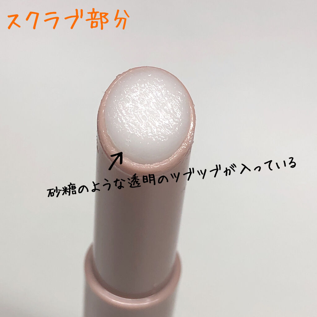 - 塗るだけで手軽に「柔らか唇エステ」 潤い&角質ケアができるリップスクラブ。 唇の上で溶けるお砂糖のスクラブが古い角質を優しくオフして、なめらかな唇に整えます。 リップパックした後のような高保湿が持続します。 拭き取り・洗い流し不要なので、外出先でも手軽にケアできます。 清涼感のある使い心地 ・スクラブ目的として砂糖の粒子を配合しておりますが、唇の状態によって刺激に感じられる可能性がございますのでご注意ください。 ・強くこすると刺激を感じることがあります。こすりすぎないように注意してください。 ・大変柔らかいバームですので、1㎜程度繰り出してお使いください。 ・一度繰り出したバームは戻りませんのでご注意ください。