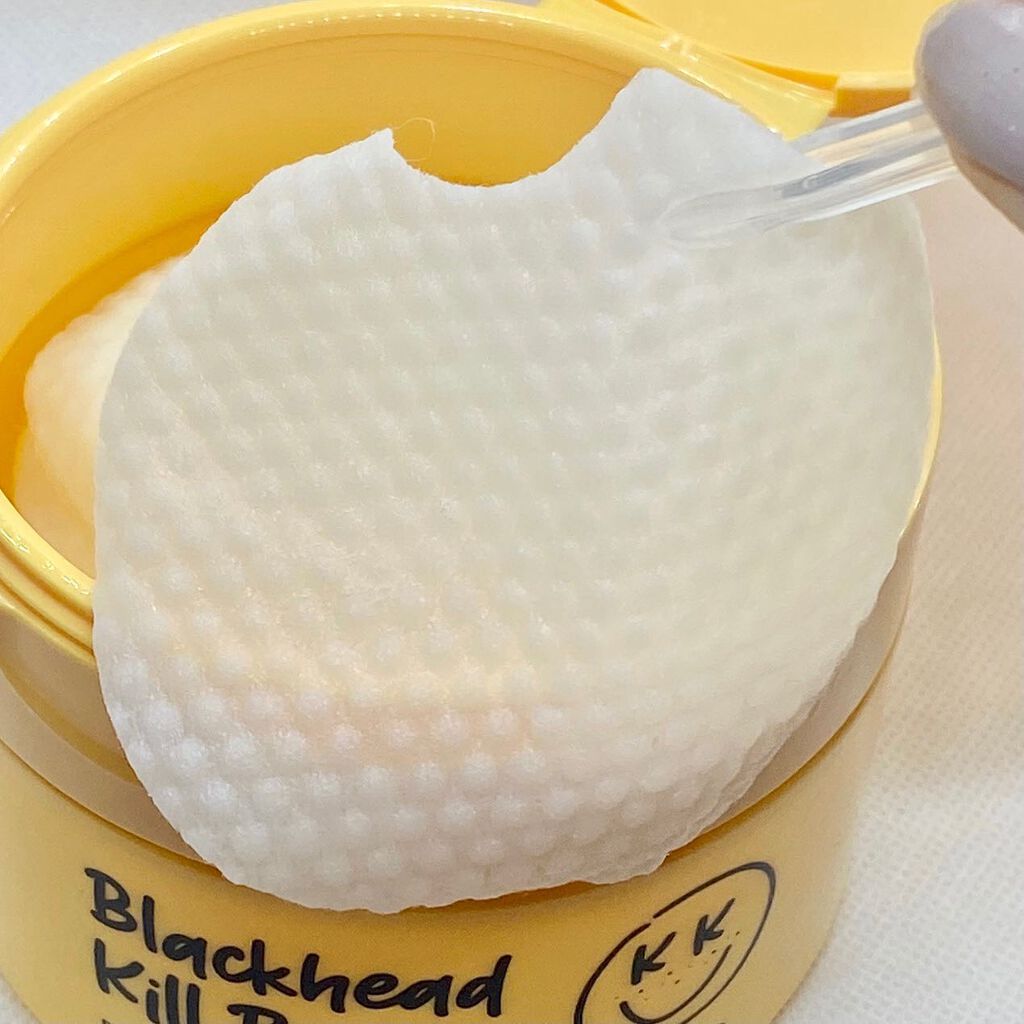 - 「キルパッド」はAHA、PHA成分が不要な角質をやわらかくし、BHAや人間の皮脂構造と似ているホホバオイルが毛穴や皮脂汚れをやさしく溶かして洗浄します。さらに毛穴汚れをすっきり除去した後はシカ、ティーツリー成分がお肌の鎮静をサポート。収れんに優れたレモン水も配合し、開いた毛穴までケアします。 気になる毛穴の黒ずみは「キルパッド」でくるくるマッサージすると、たっぷり含まれたオイルが毛穴汚れを溶かしてツルツル鼻に。また5種の特許成分*を配合し、毛穴や栄養、鎮静、保湿バリアケアをサポート。生き生きとした健康的な肌に導きます。 *韓国における特許 三日月カットのパッドは1枚ずつ取り出しやすく、付属のピンセットでより衛生的に使用できます。8cmの大きめパッドにオイルをたっぷり含んだパッドはやさしくメイク、皮脂汚れをふき取ることができます。