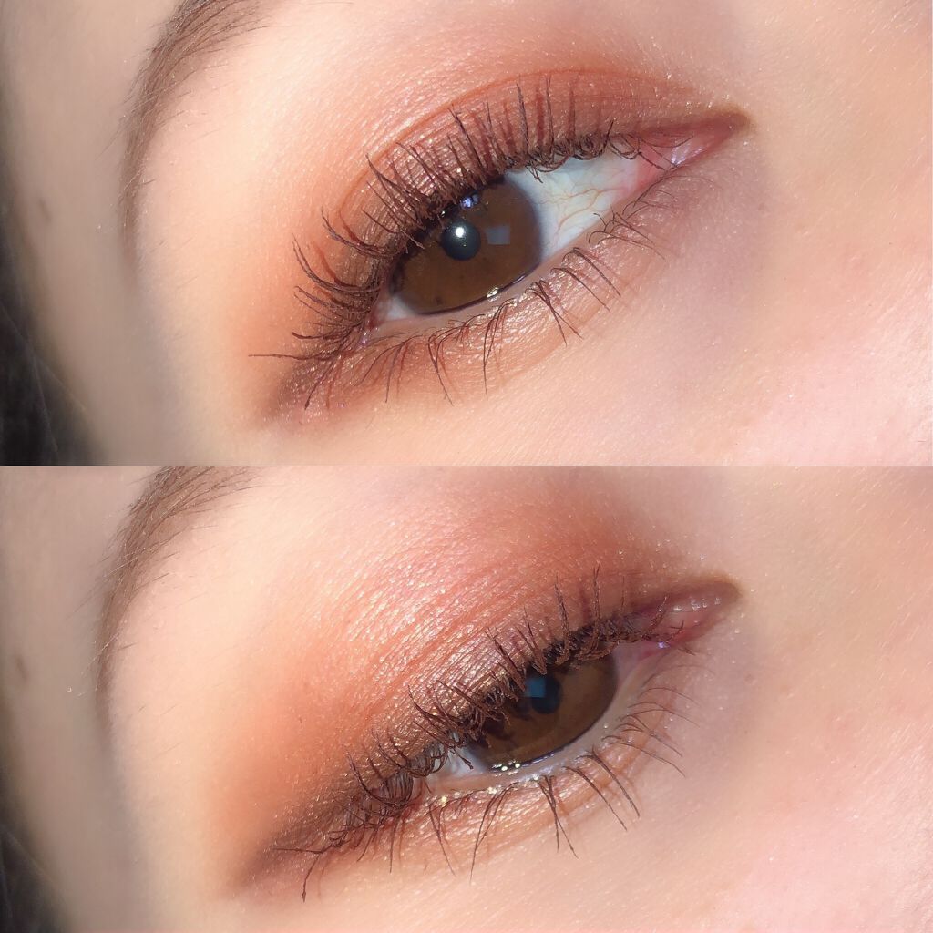 よくパレットのなかで明るいカラーをベースにまぶたに広く塗ることが多いのですが、パール感のあるカラーを避ける🙆♀️! パール感たっぷりの明るいカラーは涙袋に使うぐらい光を集めてぷっくり見せてくれるので、まぶたに広く使うと腫れぼったく見えがち😓 目元を明るくみせてくれたり、次に使うアイシャドウをぼかしやすくしてくれるけど、すっ飛ばしてメインのカラーを塗っちゃう✊🏻❤️🔥 涙袋にはたっぷり塗ってぷっくり見せる🙆♀️💕 シルキースフレアイズのマットタイプはすごく優れているな〜と感じました☺️💗 赤やオレンジなどは、入れすぎると腫れぼったく見えやすいので、見せたいカラーは下まぶた目尻にのせて色をたのしむ♡♡ パール感なしの透けマットだけじゃ物足りない… そう感じさせない華やかなラメが左上に入っているので黒目上と涙袋にのせるとすごく可愛い仕上がりに😍! 厄介な左右差のお陰でマットアイシャドウが好きになりました😌💕