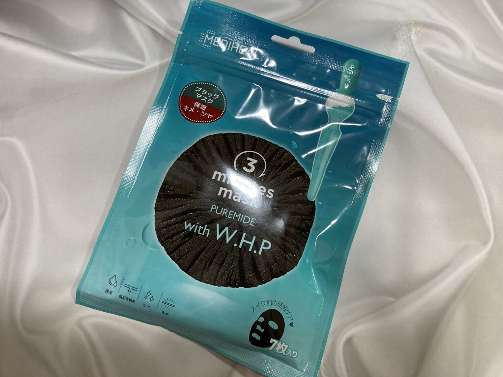 MEDIHEAL3ミニッツマスク:ピュアマイドwithW.H.P黒が印象的なフェイスパック。3分というのが嬉しいですね!化粧水で整えた後に、最高5分までつけてOKみたいです。残った美容液は首につけたり、七枚入りで飽きない。#提供...