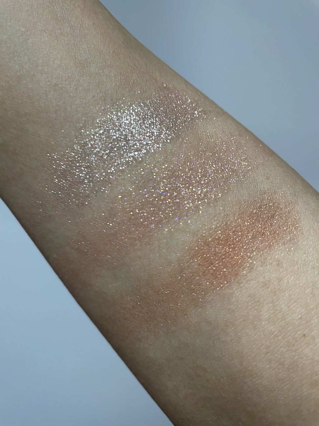 ちふれ シングルカラーアイシャドウ 102 ピンク系 ¥770 CEZANNE シングルカラーアイシャドウ 04 クリアラメ muice うるみオンアイズ ¥880 01 クリスタルシャンパン