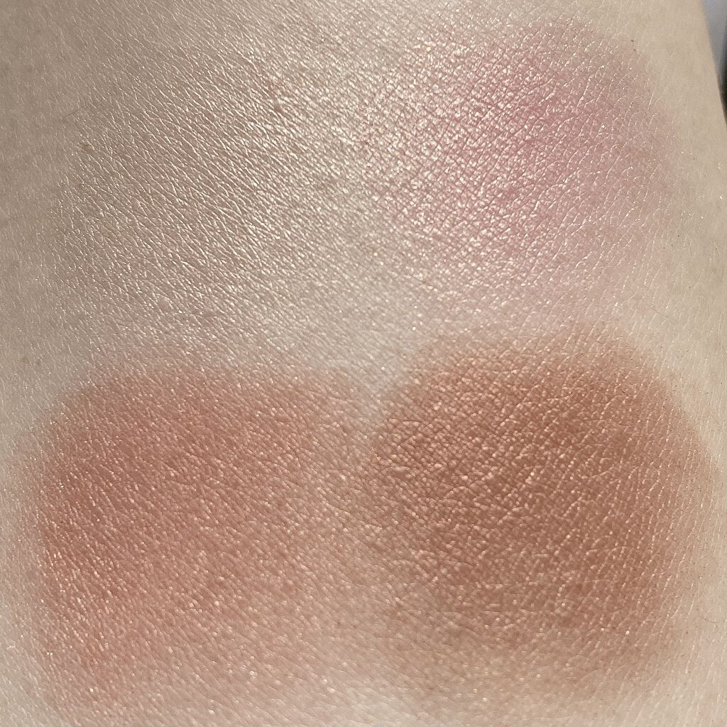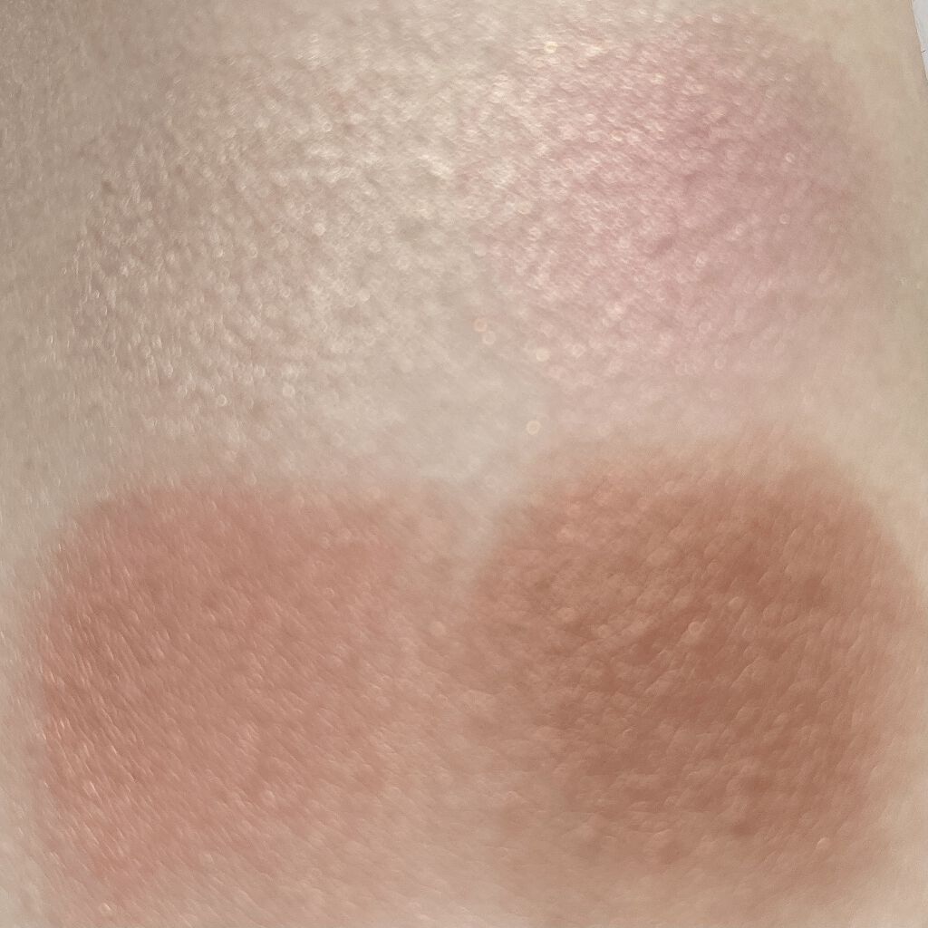 指で押さえてむにゅっと パールでキラキラ感はあるけど、細かいので本当に上品♡ 肌に乗せると見た目よりも明るいテラコッタオレンジに発色しました。 さらさらなのに伸びもよく、濃さも自由自在で、とても使いやすい&かわいい新作チークでした♡♡♡