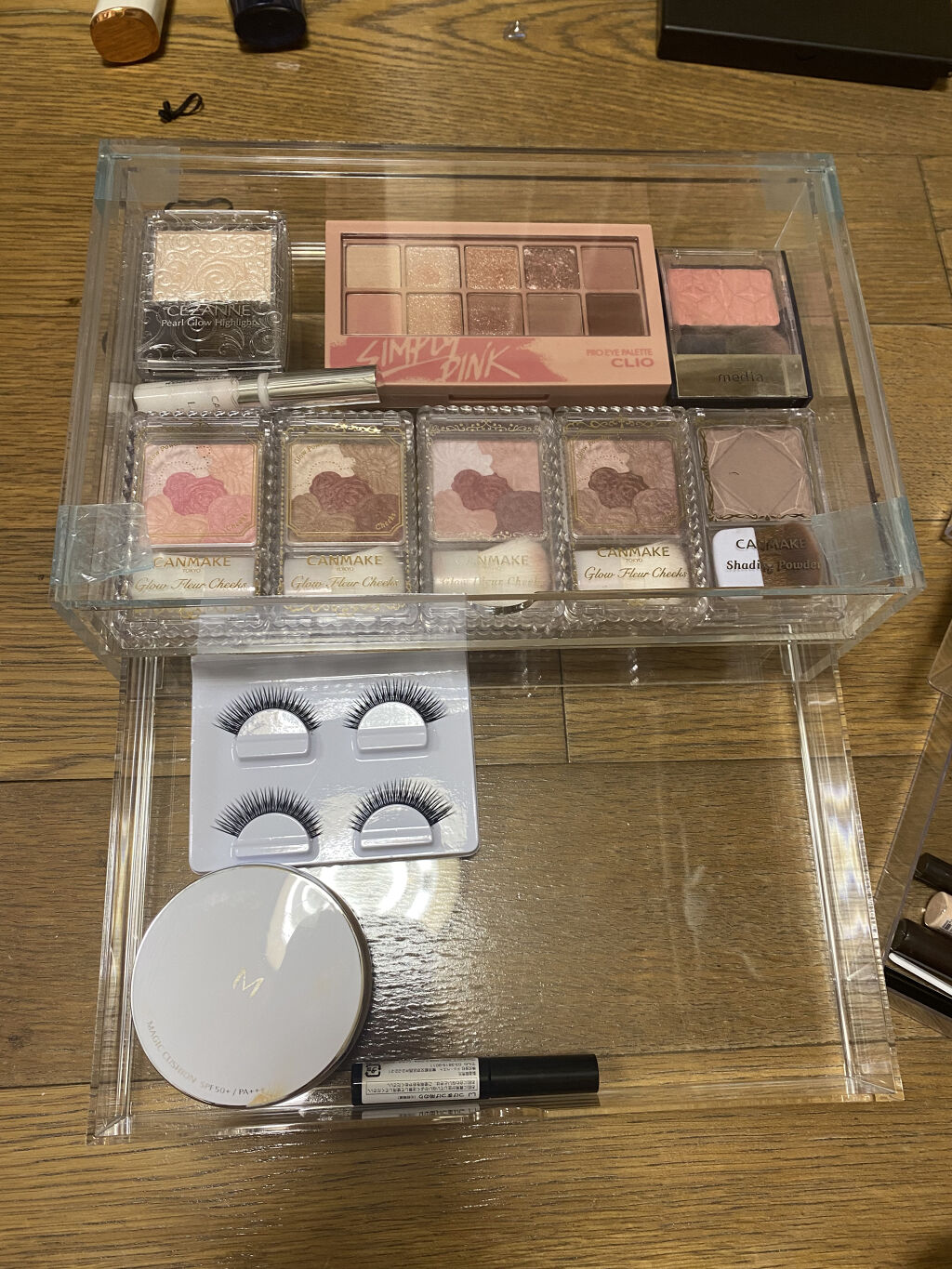 生活音の動画ってCEZANNEの下地が出てきた時点で中高生ってわかるよね (わかる人いるかな?)。あたしは片付ける動画が好きです。 キラキラ女子のようなドレッサーはいらないけど大好きなコスメは綺麗に収納したい。 主に無印良品の2段ボックスを重ねていて、下の方はダイソーの300円の1段の収納(無印よりちょっと大きめ)を重ねています。