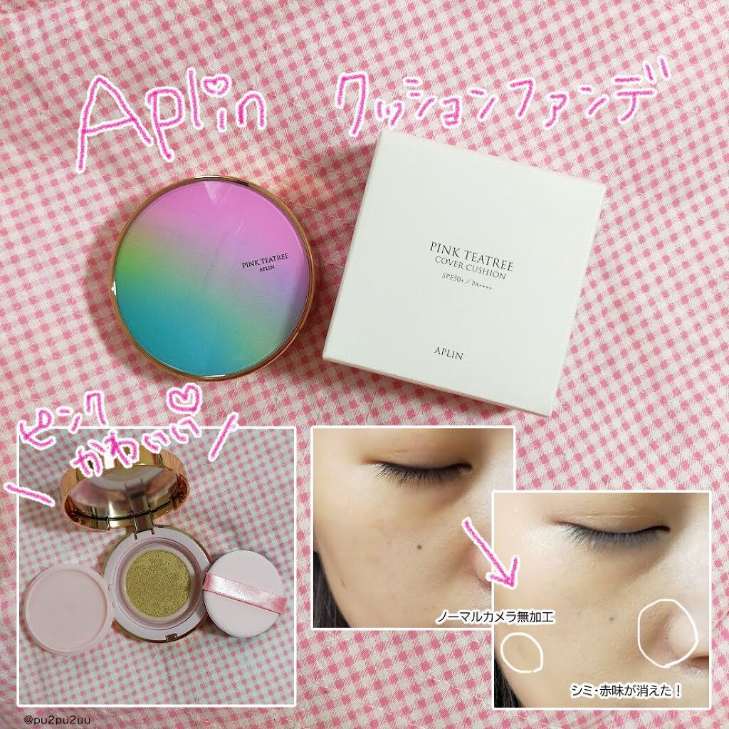 APLIN ピンクティーツリーカバークッション 21号ライトベージュ 2,490円(税込) 少量でよく伸びてハイカバー! 赤みやくすみをしっかりカバ一できるのに、厚塗り感のないなめらかな仕上がり♡ ハイカバーなのにナチュラルなツヤ感とサラッとしつつ、乾燥崩れしにくい仕上がりに感動します!!