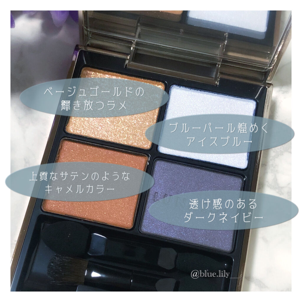 上質なシルキーな粉感もさすがのゲランで好みです。瞼にしっかりと密着して深みのある発色を叶えてくれます。 セミマットなベージュやシアーブラックの上にシルバーパールやサテンの艶めきのあるモーブグレージュを重ねるとなんとも美しいツヤが瞼を彩ってくれます 一見パールシルバーが派手に見えますがブラシでふわりと乗せることで月明かりを宿したような上品な艶感を添えてくれます